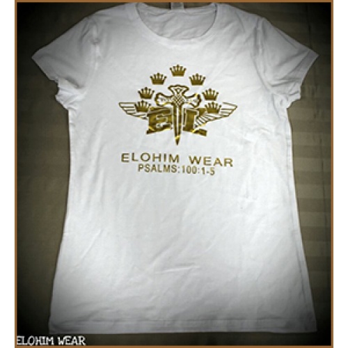 Women's White T-Shirt with Gold Logo